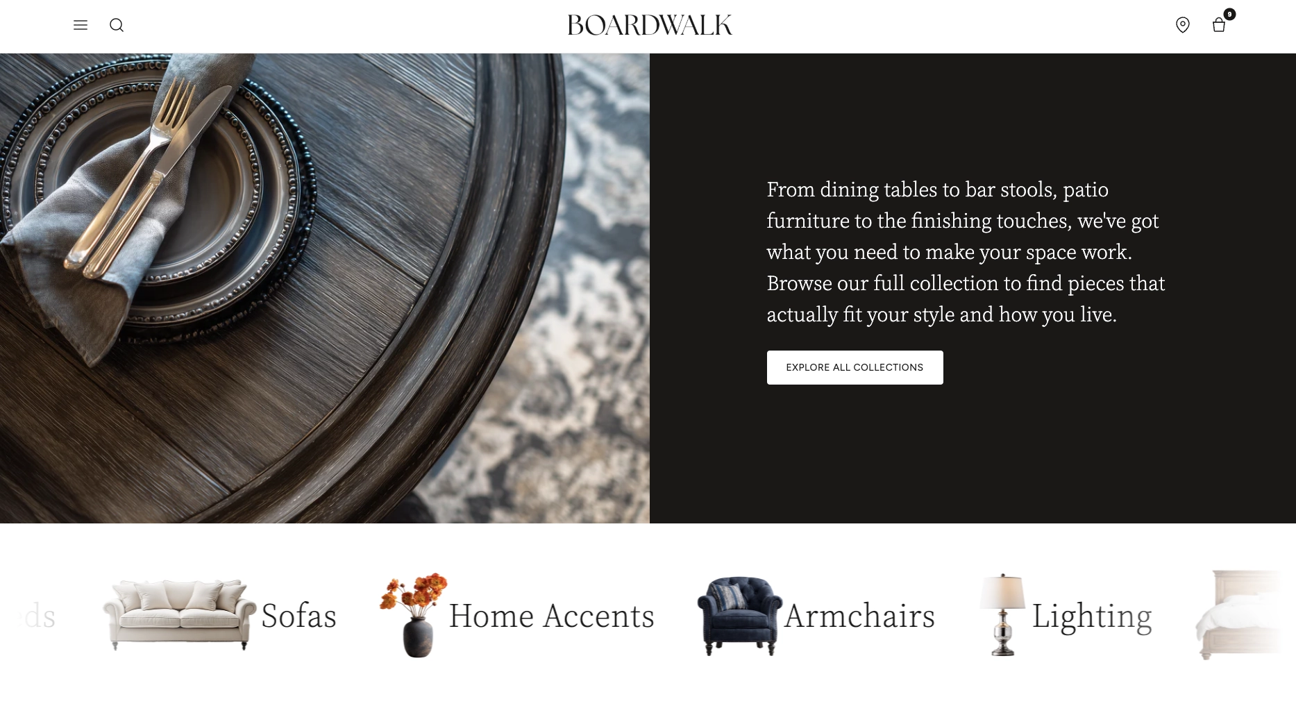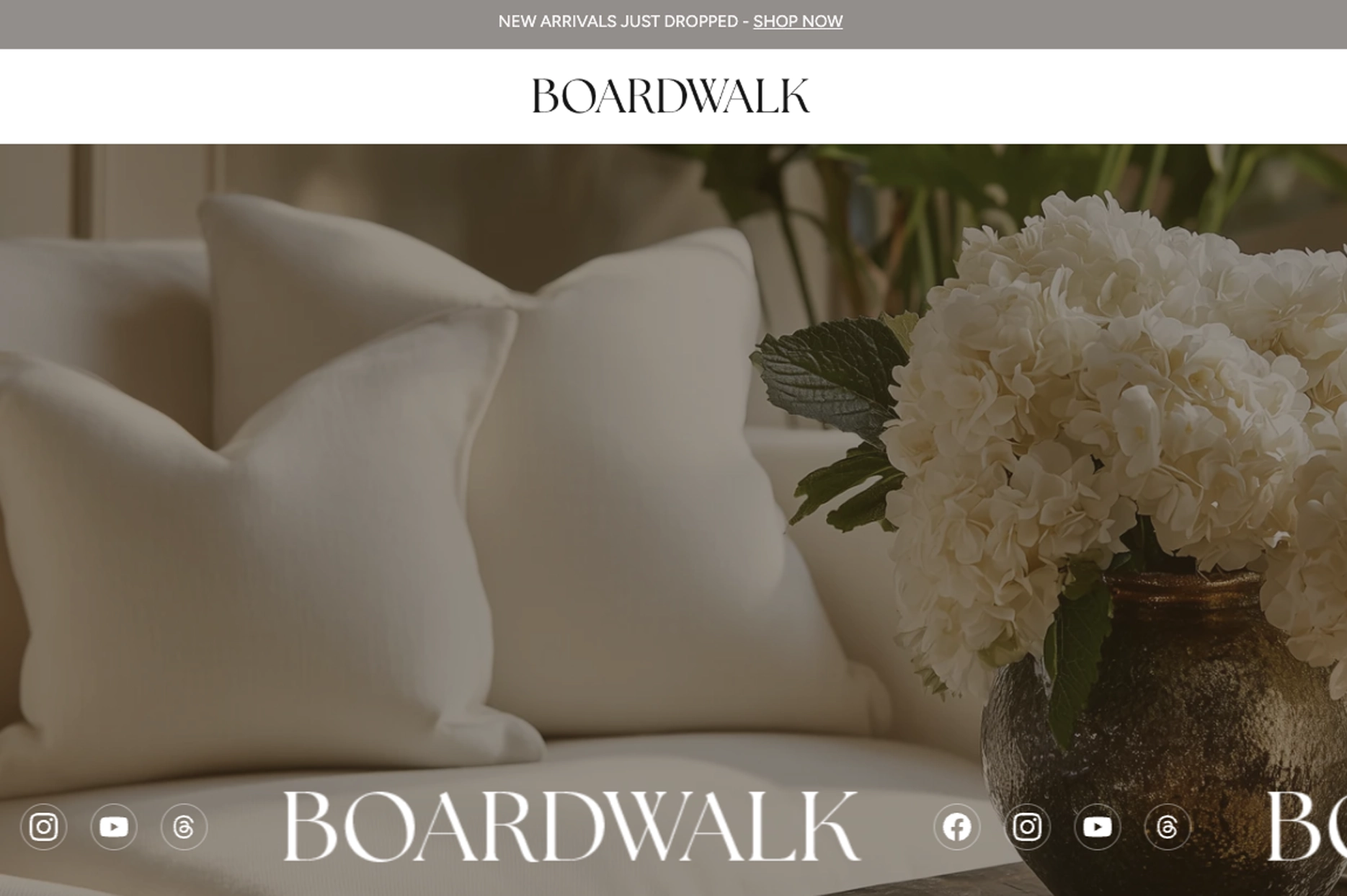 Explore BoardwalkBoardwalk is a premium Shopify theme for brands that refuse to compromise between aesthetics and performance. Built for visually driven brands in fashion, home, lifestyle, and beyond, it combines editorial-grade design with deep merchant-facing flexibility.