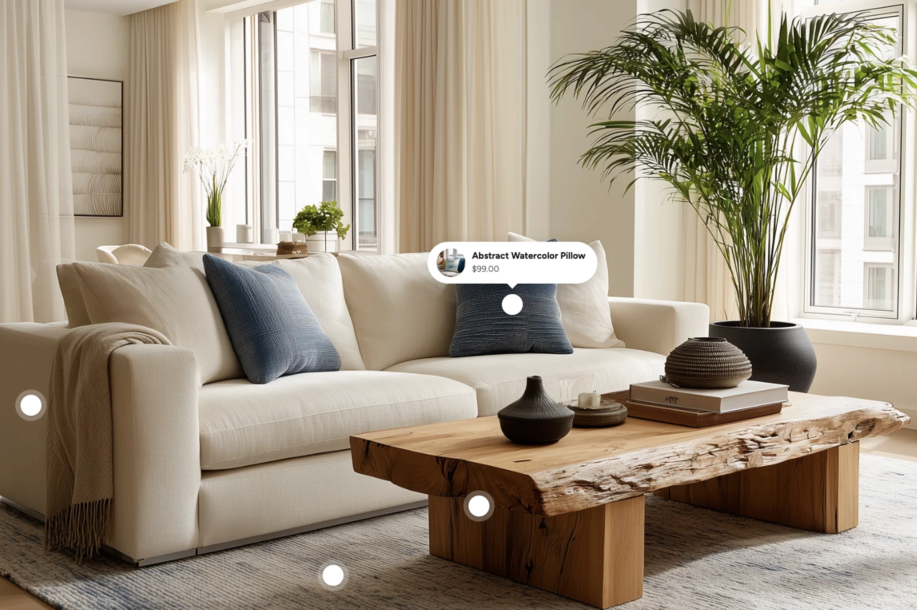 Turn lifestyle content into a storefront. Tag products with timed hotspots that appear as the video plays, linking straight to quick view or the product page — no interruptions, no extra clicks.